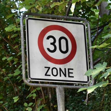 Wir fordern Geschwindigkeitstrichter an beiden Ortsein- bzw. -ausgängen zur stufenweisen Regulierung des Verkehrs (z.B. 40/70/100)